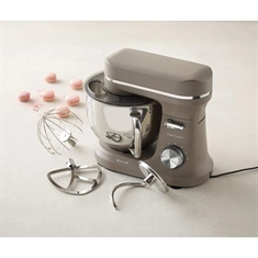 Røremaskinen har en kapacitet på maks. 1,5 kg. Takket være maskinens kompakte størrelse, fylder den ikke meget på køkkenbordet. Piskeris, dejkrog og fladpisker i rustfrit stål medfølger. Et piskeris som pisker æggehvider, kagecreme eller en luftig flødeskum. Dejkrogen gør det nemt at ælte dej, uanset om det er til sunde boller, pizzadej eller anden smidig dej. Fladpiskeren gør det nemt at røre kagedej eller frikadellefars.
