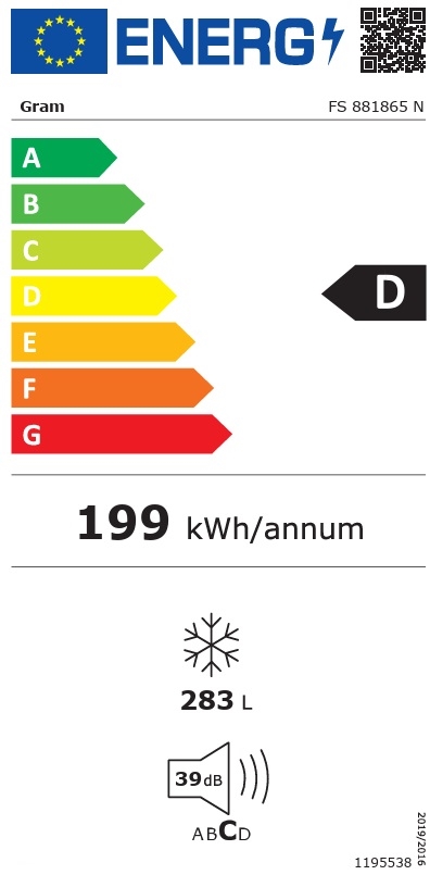 Gram FS 881865 N Fritstående Fryseskab