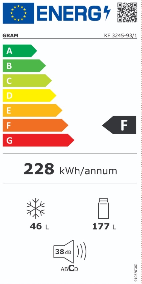 KF3245-93/1 fritstående kølefryseskab fra Gram