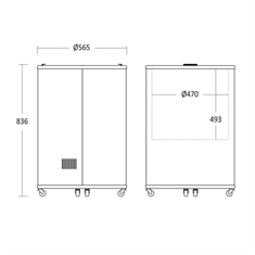 • Køleren er monteret med 4 hjul, og dermed er den let at flytte rundt med, også selvom den er fyldt med drikkevarer.