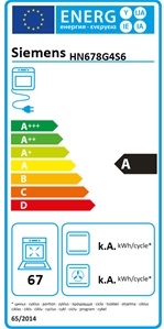 HN678G4S6 er  en elektrisk indbygningsovn fra Siemens i sort og rustfrit stål med et ovnrum på 67 liter og smarte funktioner som både pyrolyse, mikrobølgefunktion og grill.